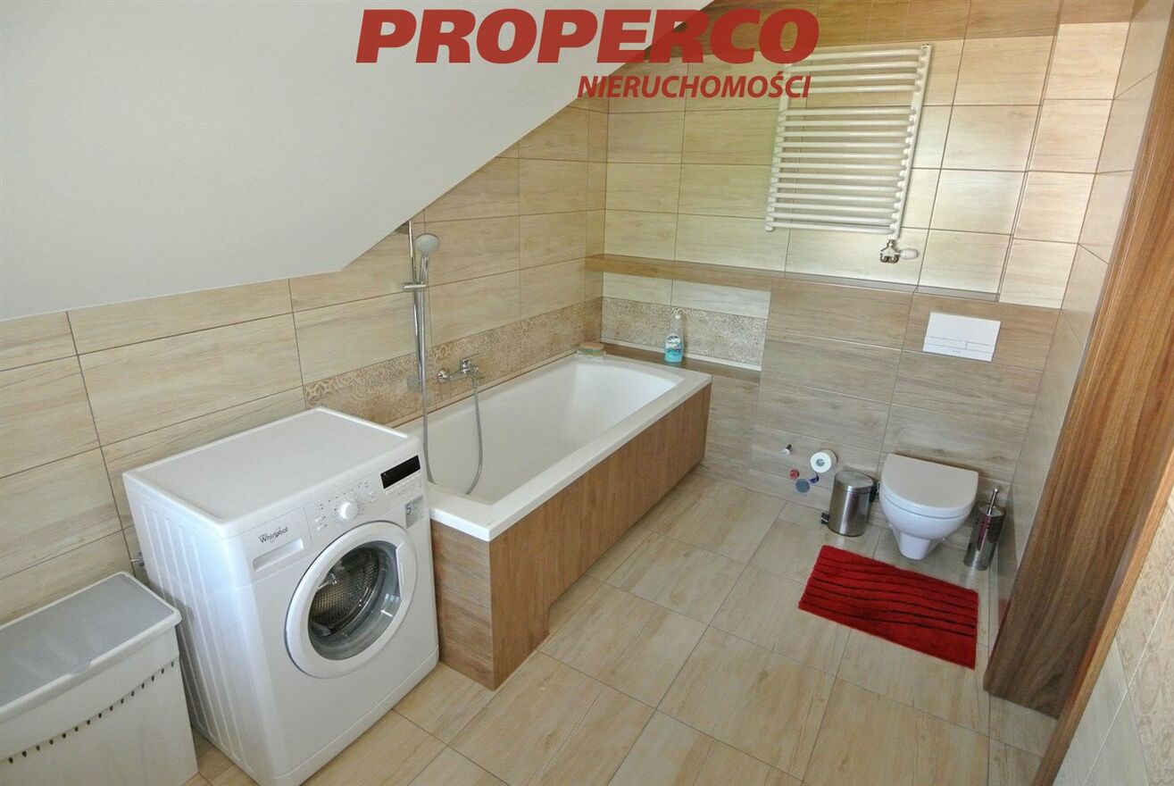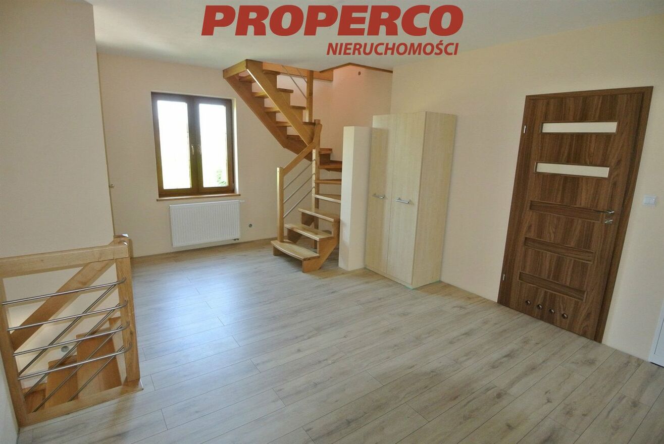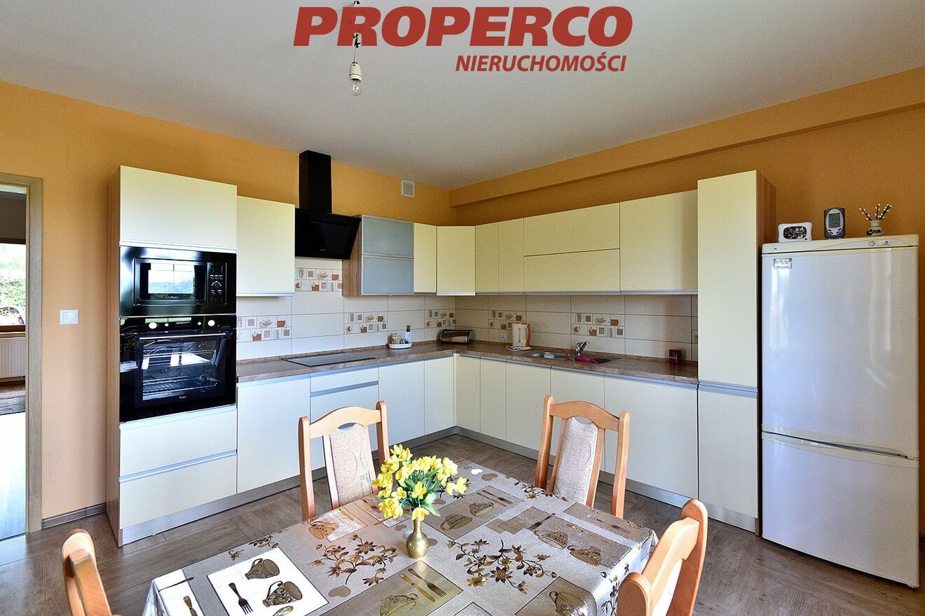 Część budowlana działki (ok. 3000 m 2 ) ogrodzona, brama otwierana na pilota, zadbany teren z oczkiem wodnym. Dojazd drogą asfaltową. Spokojna, cicha okolica z dobrym dojazdem do Kielc. W bliskiej odległości szkoła oraz przystanek komunikacji miejskiej